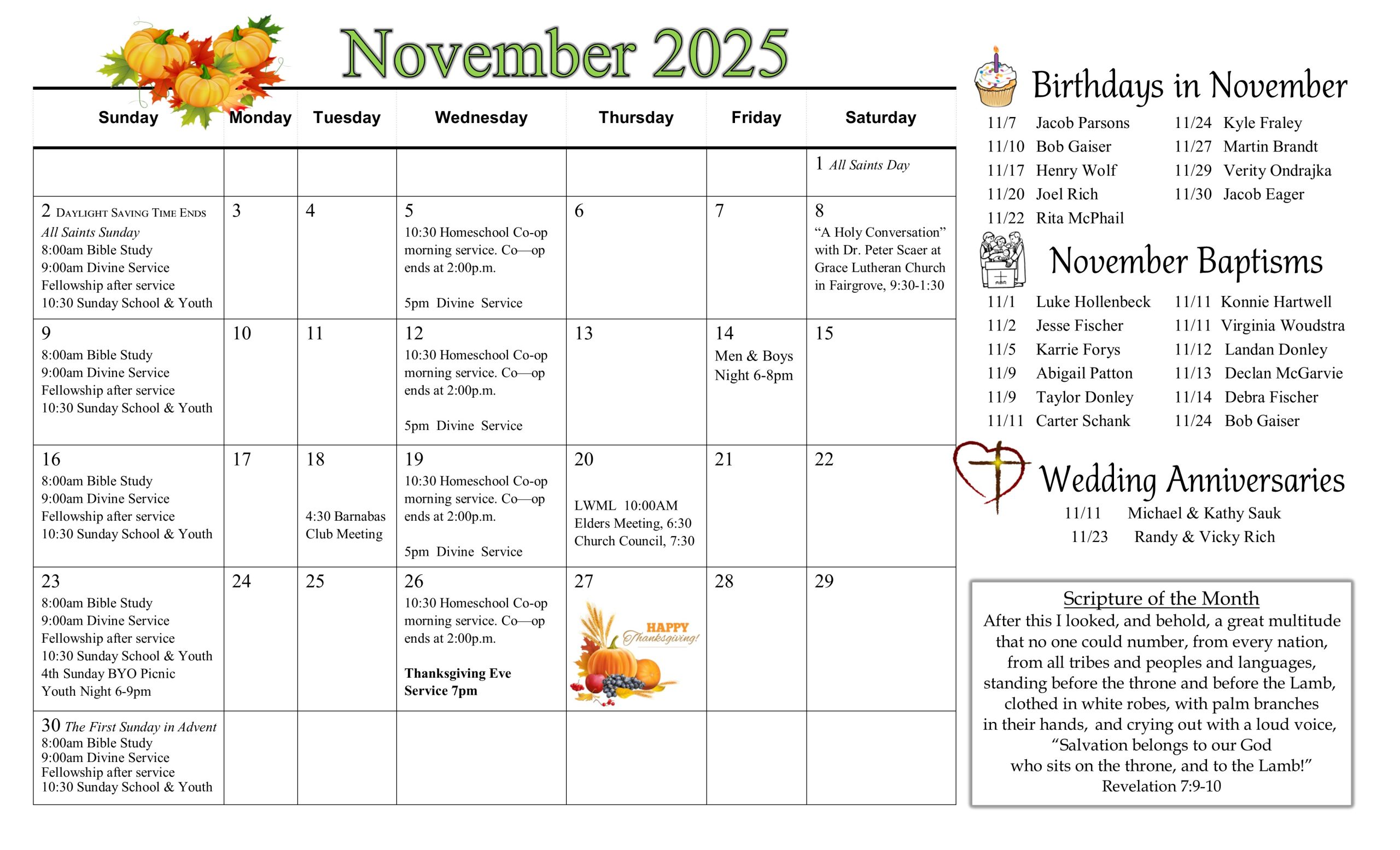 5:00 p.m. Spoken Divine Service (no musical accompaniment)